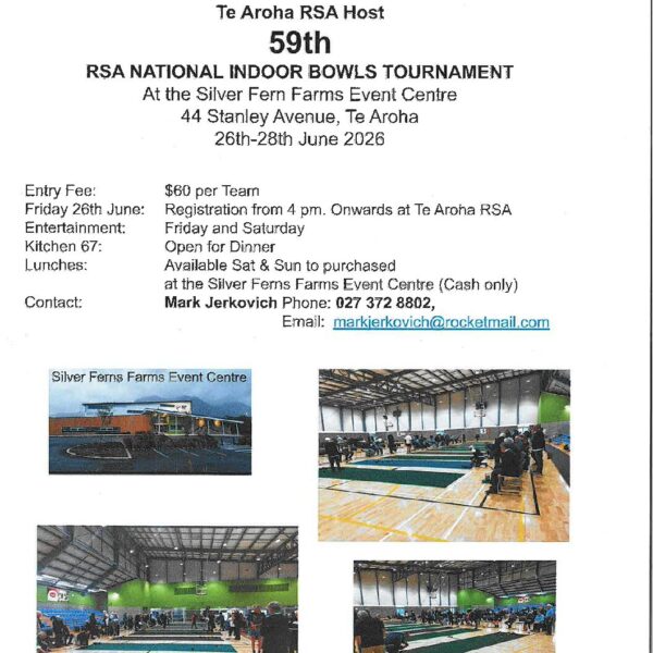 Te Aroha RSA Host-RSA 59th National Indoor Bowls Tournament